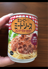 缶に 入ってるミートソースが 好きです。2人前なので 2人で 食べる 時に食べてます。