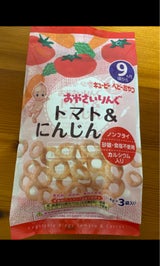 トマトもにんじんも、直接だと嫌がったので、お菓子で慣らそうと思い購入。不思議な顔しつつも食べてました。しめしめ。