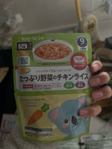 副食の一品に役に立ちます。ボリュームもあり、かっぷの「野菜たっぷりチキンライス」と味も量も同じです。こちらの方が20円程お安いです。コストは、こちらの方が安価ででお得です。試しに買ったのですが、容器に移さなくてもこのレトルトパックが立つことができるので便利です。 キューピーの商品は安心して食べさせられます。