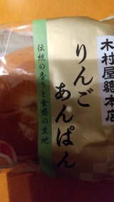 りんごの餡がパンの中に入っています。どちらかというと、餡は羊羹のようにねっとりして甘く、和風のパンです。木村屋さんのパンは、パン生地もあっさりして餡と馴染んでいて美味しいですね。