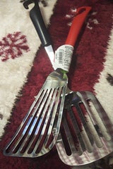 平たく長いバージョンのフライ返し 大きいのに使える 赤色でかわいい。