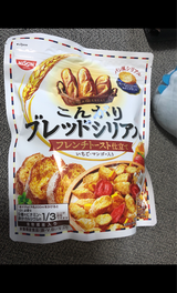 新発売ということで試食をして美味しかったので購入。小さいフランスパン的なシリアルが食べていて楽しい。味はメープルだったのですが他の味も期待したいです。