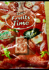 乾燥イチゴをくだいて、乾燥イチゴを混ぜ込んで焼いたビスケットに、ふりかけた感じです。甘酸っぱいです。