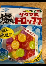 サクマ式ドロップスの缶がなくなるというので薬局で見かけて気になって買いました。個別包装で小さくて良いのですが、塩っけが先にくるので夏場にはピッタリの商品だと思います。