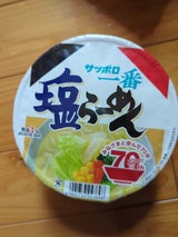 安定の塩ラーメンを手軽に食べられるのでカップ麺は便利です。主人がだいすきなやつ。