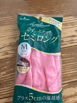 いつもリピ買いしているゴム手袋がナゼかどこのお店にも見当たらなく、仕方ないので初めてこちらを買いました。短いものは使っている最中に水が入り込んできてイライラするので長めのもの一択です。 こちらの商品は長さはちょうど良いです。ただ、Mサイズを選んだのですが私には何か小さい…(いつも他メーカーのMサイズで問題ないのですが)。食器を洗ってる途中で一旦他の作業をしようとして脱ごうとすると物凄く引っかかり脱ぎづらいので私にはイマイチでした。ゴムの厚みもあって長持ちしそうで、素材的にも良さげだったので残念です。あと、色もギラギラしたピンクであまり好みではないかな…。 以前から使っているものをネットで探して戻ります。