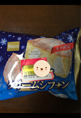 フワフワ生地に甘すぎない クリーム。シュガーパウダー? がかかっててイチゴなどクリームを 足して飾ったら ちょっとしたケーキとして使えそう