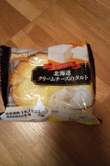 安売りで 86円。北海道産クリームチーズを 99%使用したタルト。濃い味だけど甘すぎてチーズの酸味が感じられない。甘党にはいいのかもしれないが、チーズ好きにはオススメできません。カロリーはかなり高く、1個 414kcal。生地がボロボロくずれるため、小皿の上で食べた方がいいですね。