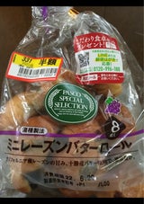 PascoSpecialSelectionはどのパンも美味しい。このミニレーズンバターロールはおちょぼ口の私でも軽く二口で食べれる大きさでバターの香りも良くとても美味しい。