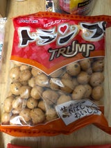 こちらでは見たことの無い珍しいパッケージだったので、手に取りました。 青のりついてるし、おかきみたいだし??ビスケット??と味の想像がつかないまま初トランプです。 確かにサクサク香ばしかったです。小麦粉が原材料だから、おかきではなくビスケットなんですね ひとつひとつについているのは顔なんでしょうか?