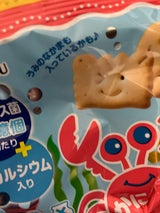 子供のオヤツに。かにだけでなく、魚やヒトデも入ってて可愛いけど、ビスケットとしては少し固め。あと量が少し少なめ。