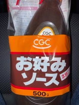 CGCのプライベート商品は製造が大手メーカーなので好きです。お好みソースはオタフクが良いなと思ってたら、こちらもオタフク製造でした。味も良いです。