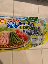そもそも酸っぱい食品は苦手だが 冷やし中華の酸っぱさは例外。だが袋を良く見たらレモン醤油 ?? 何それ?いや〜 柑橘系の酸っぱさは嫌いだわさ。失敗した〰と思ったけど 元々 酸っぱい汁にレモンを入れた所でレモンの酸味は判らない····まぁ 結果的に大丈夫だったも レモンなんか入れないで 普通の冷やし中華を作ってけろ。麺は弾力の有る細麺で美味しかった。