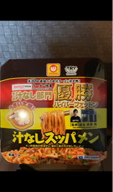 225円(税込)、167g(めん 130g)。微妙に酸っぱい味のやきそば。太麺で量的にも食べ応えがあるが、カロリーが異様に高い(733kcal)のが難点。製造元は東洋水産で、マルちゃんはブランド名。