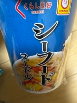 マルちゃん「くらし良好」のシーフードヌードルです。 ポークと野菜ベースのスープに魚介のうまみが加えられており、コクがある味わいとなっています。