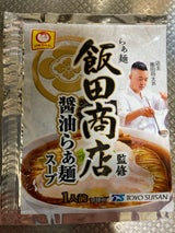 マルちゃんの飯田商店醤油らぁめんスープです。名店の飯田商店の監修の鶏と豚の深いコク、醤油のキレが最高のラーメンスープです。