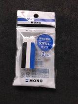ケースにMONOのロゴがないタイプのMONO消しゴムです。ロゴ無しがかわいいです。消し心地はいつものMONOと一緒で良く消えます。2個入りでお得なところも良いです。リピートありの商品です。