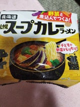 何故⁉ スープカレーラーメンなんだ… 食べると解ります! カレーうどんのスープと違いトロミが余り無く、スープの味もやや癖がある。 好みが分かれそうな商品かな…