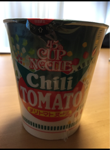 程よいチリな味とトマト風味がマッチング、洋風なカップヌードルでなかなか美味しいです。