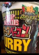 辛い!!! 胡椒系の辛さ カレーはスープカレー系のスープで薄め スモークベーコン感は全く無い… ブラックペッパーカレースープという感じ? 普通のカレーヌードルの方が美味しいなー。
