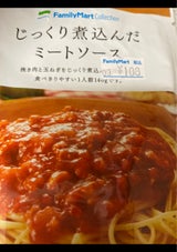 ファミリーマートのじっくり煮込んだミートソース1人前140グラムです。使い勝手良く、美味しいです。