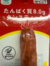 豚のタンを加工したソーセージ?です。ほのかにレモン風味が効いていて美味しいてす。 84kcalですが、食べ応えがあります。