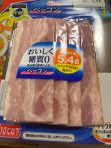 糖質ゼロのベーコン見つけたので買いました。 別なスーパー見たら4枚入りが3セット?になってるのが売ってました! セットになってる方がお買い得だったのにショック(T . T) 今度買う時はセット入りを買いたいと思います。