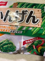肉じゃがを作る時の彩りに緑の野菜を探していましたが、生野菜のスナップエンドウは高く、冷凍コーナーへ。冷凍ですが調理しても水っぽくなく、彩りも味も大成功でした!