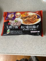 五穀ご飯は美味しい! アジの竜田あげ、 甘酢あんの味も好みでおいしかった~☺️ ですが、個人的に、 おかずはちょっと少なめな感じで 物足りないです(・・;) 副菜でも、いいので、何か欲しいです。 味は大満足でした