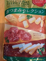 サラミとチータラが入っている、贅沢な一品です。大抵の人は好きでしょう。ただ半額でも量は少ないかな…贅沢品です。金曜日にアニメ見ながら食べるために取ってあります。