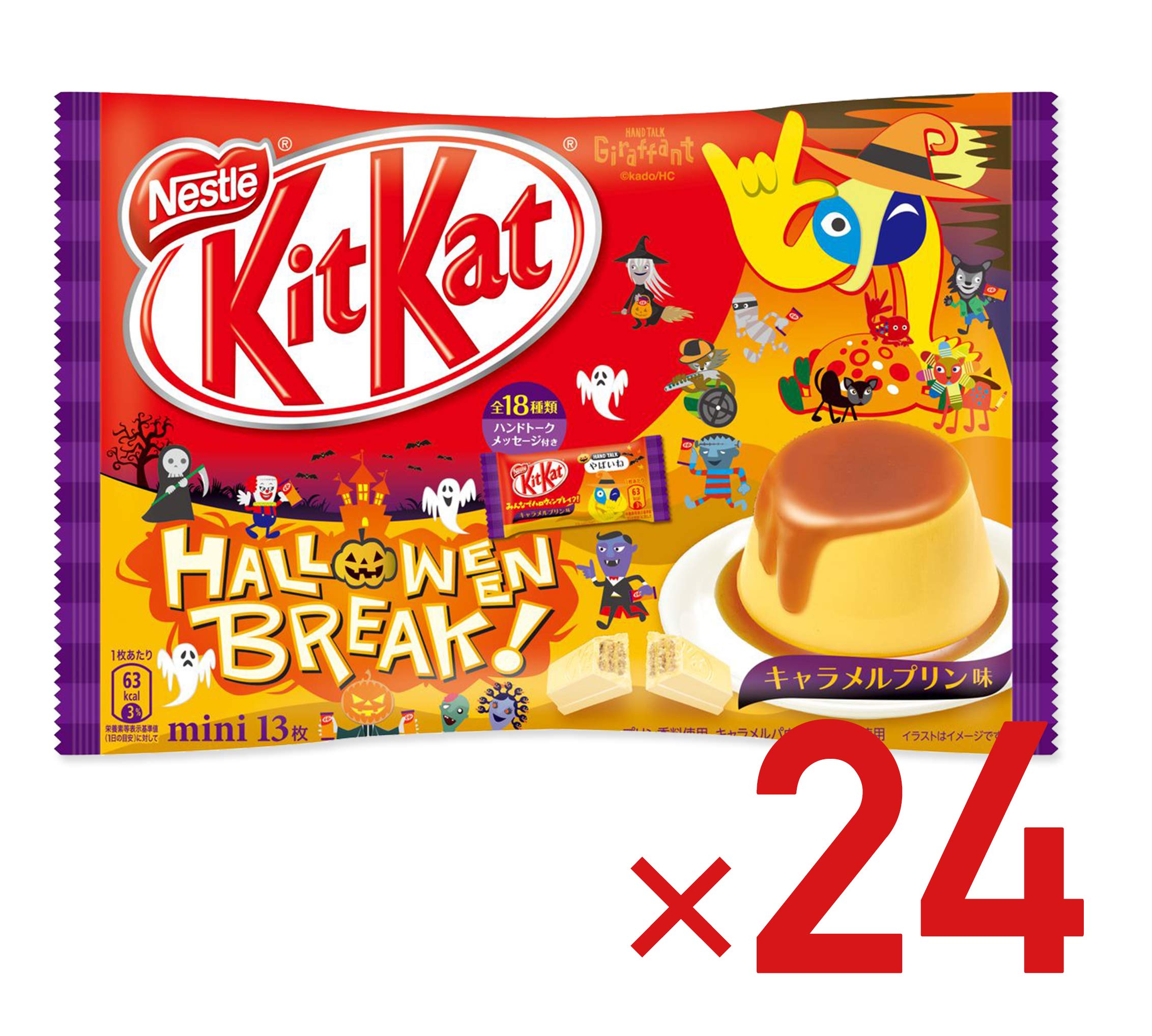 ハロウィンが終わって他のキットカットより安かった✨ほんのり甘いプリン風味のチョコで美味しいです。袋のイラストが色々で可愛い☺