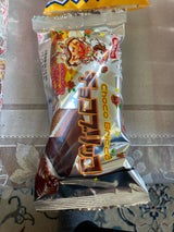 これ好きです。銀色の袋もいいですね。昔のキャラの方が商品名に合ってたと思います。大きさもちょっと小さくなった?と思っても美味しいから見つけると買います。がぶっとかじるとチョコがばらばら崩れるし、ぼけ〜っと食べてるとチョコ溶けてべたべたになるけど(笑)でも懐かしいケーキともパンともつかないこの商品は好きです。