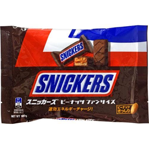 スニッカーズは家族のお気に入りです。箱買いする事もありますが、私にはボリューム有りすぎと感じる事が多いです。大袋では物足りません。この大きさが丁度良いです。