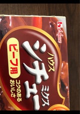 昔からあるシチューミクスです。この粉状のルゥが気に入っています。急いで作りたい時は、牛肉と玉ねぎだけで作りますが、溶けが早いのでさっと作れますよ。
