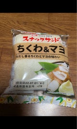 フジパンのスナックサンドでちくわ&マヨです。味は普通です。