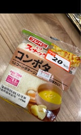 恐る恐る買って食べました(笑) コンポタとポテトって書いてあったかな? コンポタ味(コーンも少し入ってた)のポテト。ポテサラ? 意外と美味しかったです。 具は結構少ない。