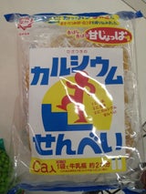甘しょうゆ味の軽い食感のお煎餅で、カルシウムも取れるなんて。次々手が出ちゃう。
