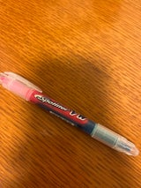 液なので力強い書き味。ダブルなのも良い。単色でいいからノック式も出して欲しいなあ。