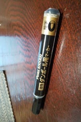 段ボール用マーカーと斬新な名前です。東急ハンズで162円でした。紙、段ボール、プラスチック、金属、ガラス、陶器にも書ける。色も何色かありました。油性のように紙に書いてもにじまないようです。
