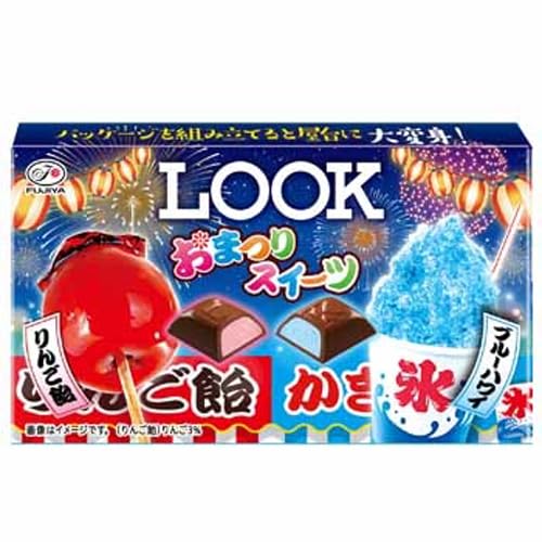 りんご飴の方は、よくあるアップルなんとか系の味に、後からはちみつっぽいのが追いかけてくる感じでしたが、ブルーハワイは…これ何味?って感じです。確かに後味(本当に最後)なんとなくブルーハワイな感じもしなくもないですが、チョコレートが泣いてるんじゃないかと思うくらい、私にはイマイチな味でした。 ルック結構買いますが、これはもう買わないかな(T . T) パッケージの楽しさ?はあると思います。(私は組み立てず箱を捨ててしまったので、作ってみればよかったなと後悔しています。)