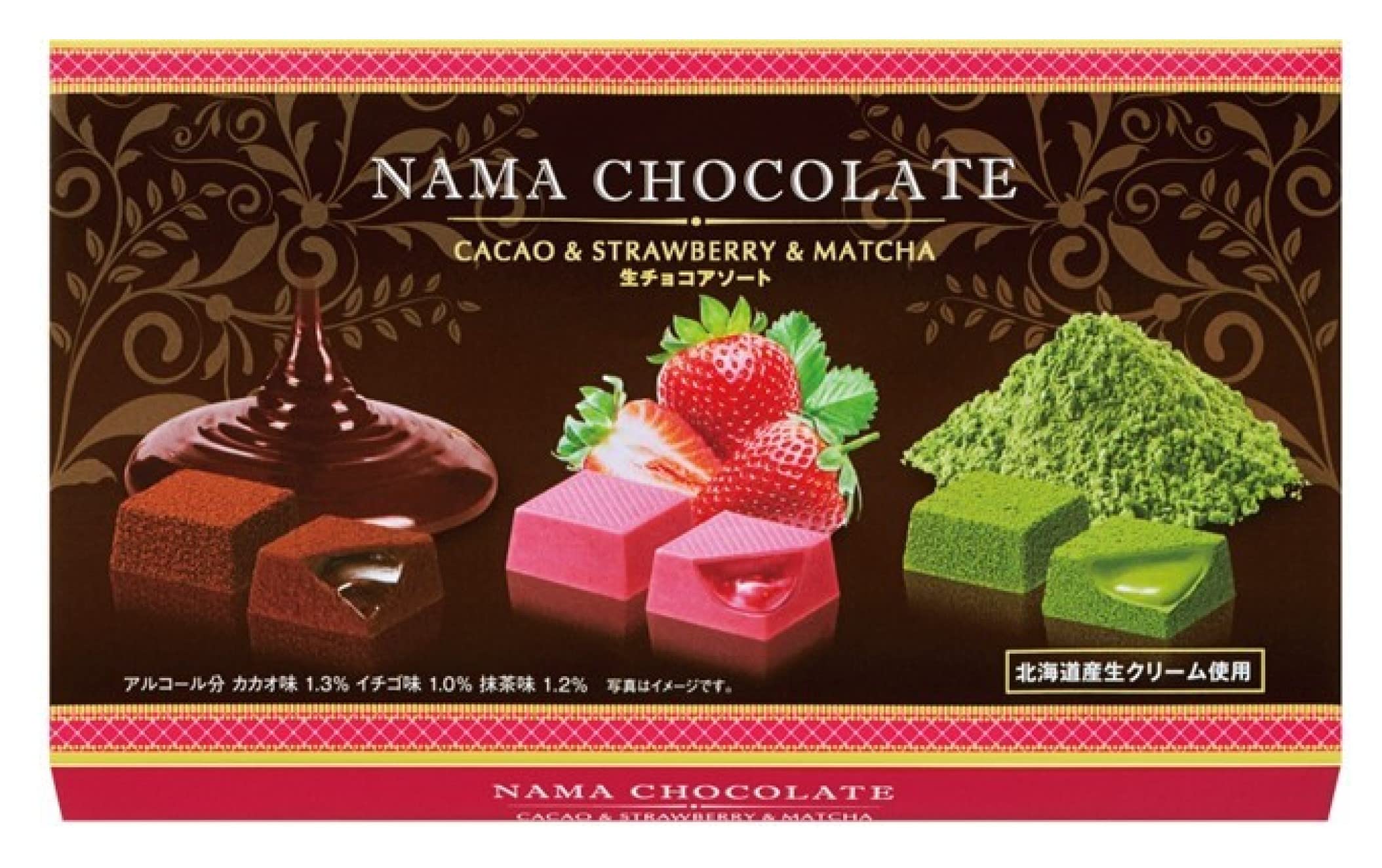 バレンタイン終わって値引きされてたので買ってみましたが… めちゃくちゃ美味しかったです!3種類分けて個装されています。抹茶は粉いっぱい落ちますが苦味と甘味が丁度良いです。いちごも程よく甘酸っぱいです。全ての味で舌の上でとろける感じがします!