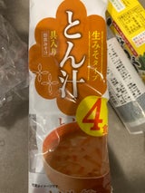 生味噌汁豚汁おいしかったですがもし1つ豚汁のコクの濃さがあったらいいかなぁと思いましたがとっても楽だったのがよかったです!