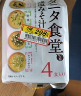 お安くなってたので購入。フリーズドライのお味噌汁。ストックも無くなっているのでちょうどよかった。オクラとめかぶと野菜、あおさ、なすの4種類各1食ずつ。非常用のローリングストック分なのでお味見でなすの味噌汁をいたたきました。減塩味噌汁なので私的には好みで、茄子もしっかり沢山はいってました。いつもはアマノフーズの商品を買っていましたが、こちらも美味しかったてす。定価で