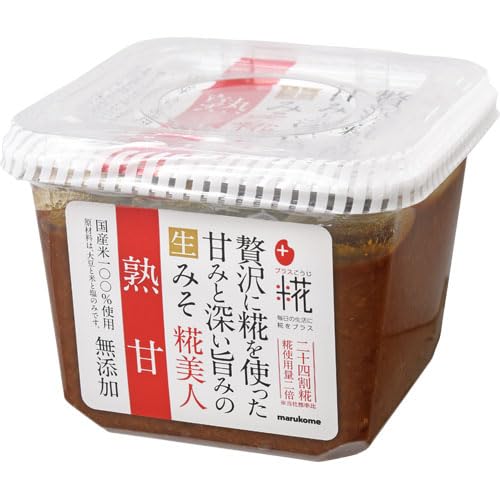 定番の糀美人は以前から使っていて甘めの味が気に入ってましたが売り場でこちらの熟甘が出ていたので速購入。定番より濃いめというか、こくがありしっかりした味ですが糀の甘味もしっかりありました。塩分が入ってる出汁の素を使う時は量を加減しながら調整したほうがいいと思います。豚汁や根菜系が合うと思います。具材によって使い分けしたいと思いました。