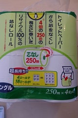 100%古紙で、芯も無いのと130メーターと言うながさも、交換が少なく助かってます。