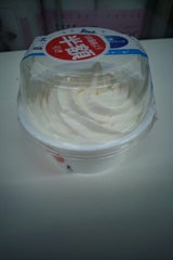 牛乳プリンに生クリームが乗っている。で、いいんかな?久しぶりに牛乳プリンを食べた。思いのほか甘かったけど、美味しかった。
