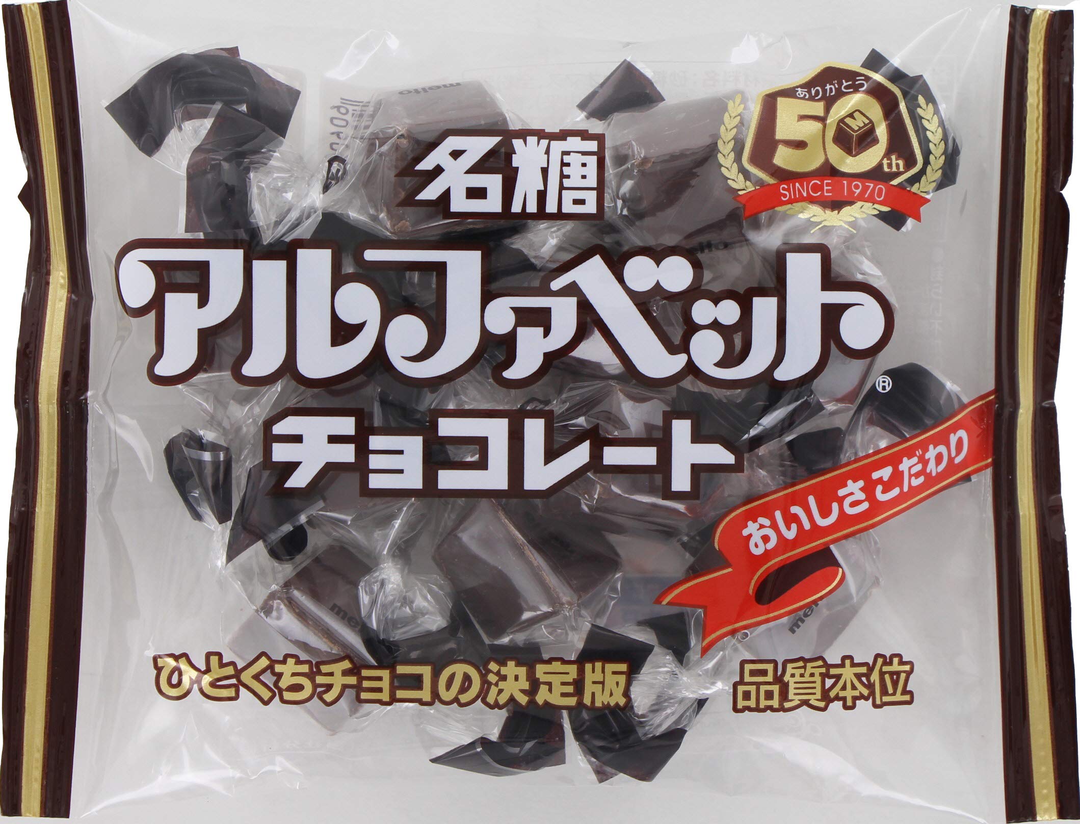 昔からあるロングセラー商品。味だけでなく英語やローマ字の文字並べや、目を閉じてどんなアルファベットが出るかなどちょっとした事も楽しめる一石二鳥の一口チョコです。