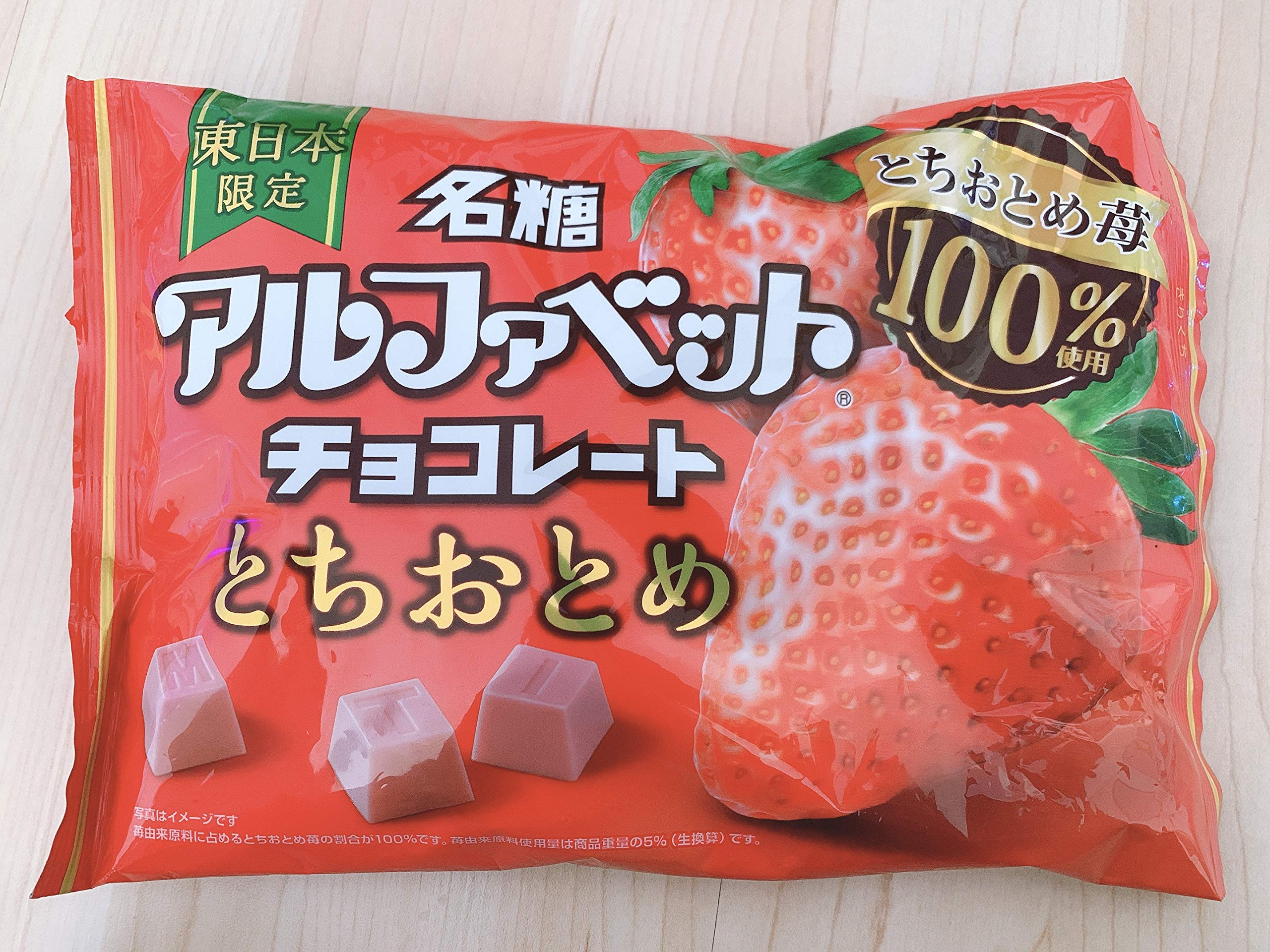 アルファベットチョコレートの苺味。見かけた時ビックリしました。東日本限定、放ってはおけません笑。味はほんのり甘くて甘酸っぱさが強く、わたし好みです。一人で一袋行けちゃいそうです笑