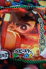 鬼滅の刃につられて子供のおやつに良いかなとうましお味とうまから味噌味の2種類を買ってみたら、うましお味は普通に美味しかったのにこちらは辛すぎて不評。 パッケージを鬼滅にするなら味も子供受けするようにしてほしかった。