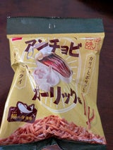 旨い。コンビニのワゴンセールの商品で安売りしてたので購入しました。商品名は(オヤツチンミアンチョビ&ガーリック味)でした。